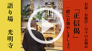 | ※ | 「正信偈」は、親鸞聖人の主著『顕浄土真実教行証文類(教行信証)』にある偈(うた)です。本願寺第8世の蓮如上人が、真宗門徒の朝・夕のお勤めに「正信偈」「和讃」をあげることを勧められ、現代にまで伝えられています。 |